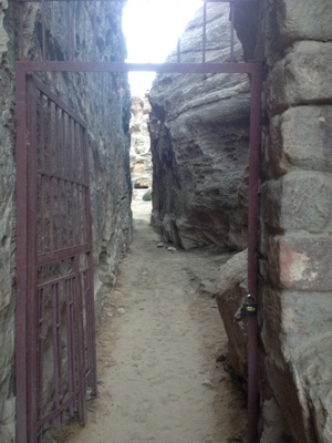 Nothing like this exists in Mecca in Saudi Arabia. There is an area called Shib Abi Talib but the whole area is open so that people could come and go from outside. But in Jordan, just outside of Petra is a place that perfectly fits this description. It was between the city and Al-Baydha, just as the ancient records describe it.